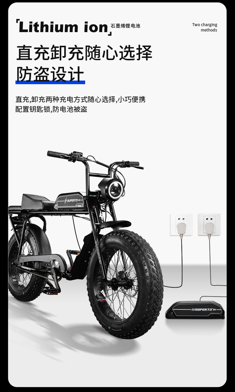 SUPER73天猫同款电动自行车 沙滩雪地越野成人学生山地助力电瓶车